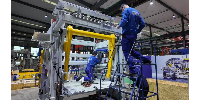La liniile de producție aleQuangong Machinery Co., Ltd., vuietul utilajelor și atelierele puternic luminate au devenit „normă” în ultima perioadă. Odată cu creșterea continuă a comenzilor interne și internaționale, clienții din întreaga lume și-au crescut cererile de achiziție de echipamente. Pentru a asigura livrarea la timp a fiecărei mașini de turnat blocuri, Quangong Machinery Co., Ltd. a lansat rapid un „Plan de acțiune special pentru garantarea livrării”, cu departamentele de producție, tehnologie, inspecție a calității și logistică lucrând împreună pentru a concura în timp.